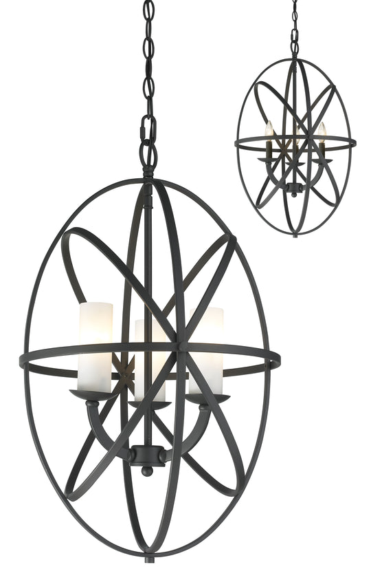 3 Light Chandelier --- Orbiting metal bands circle the contemporary inner chandelier. This family is made up of round and oval shapes finished in Bronze finishes complimented with matte opal glass. Specifications Style Number 6027-3S-BRZ Install...Regular price $240.50 -