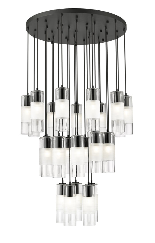 27 Light Chandelier Sleek and simple lines define the Alton pendant. This deceptively substantial design pairs a steel housing with artesian glass and a cloth-covered black braided cord for a modern touch. Available in singles or...Regular price $4,182.00 -