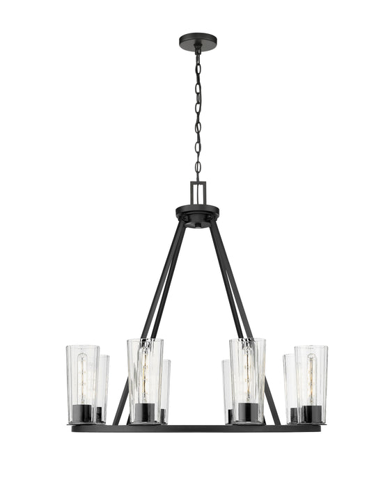 8 Light Chandelier The Titus vanity series makes a bold fashion statement with tapered clear glass shades and tubular bulbs. Rings of light with the option to have the glass shade positioned up or down –...Regular price $728.00 -