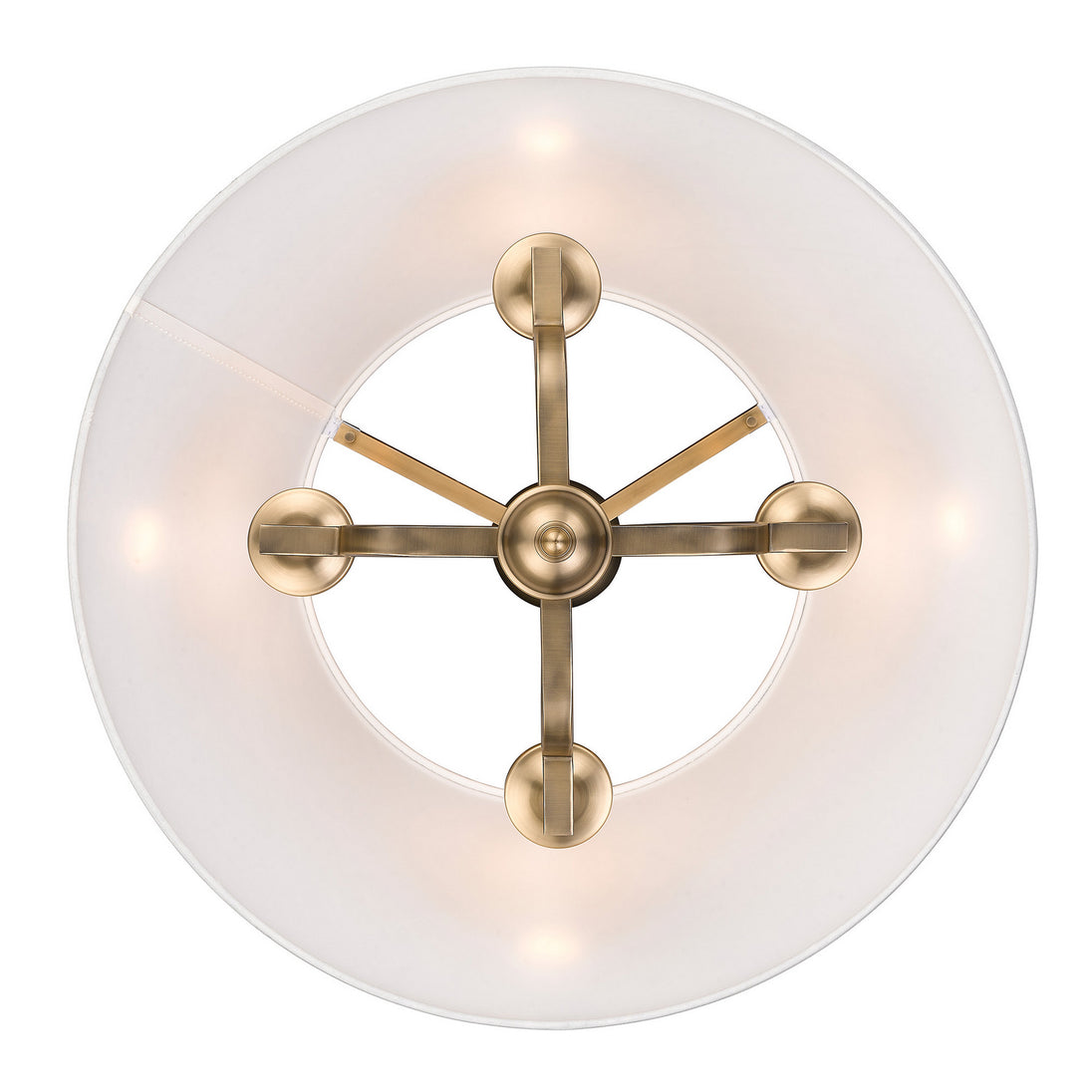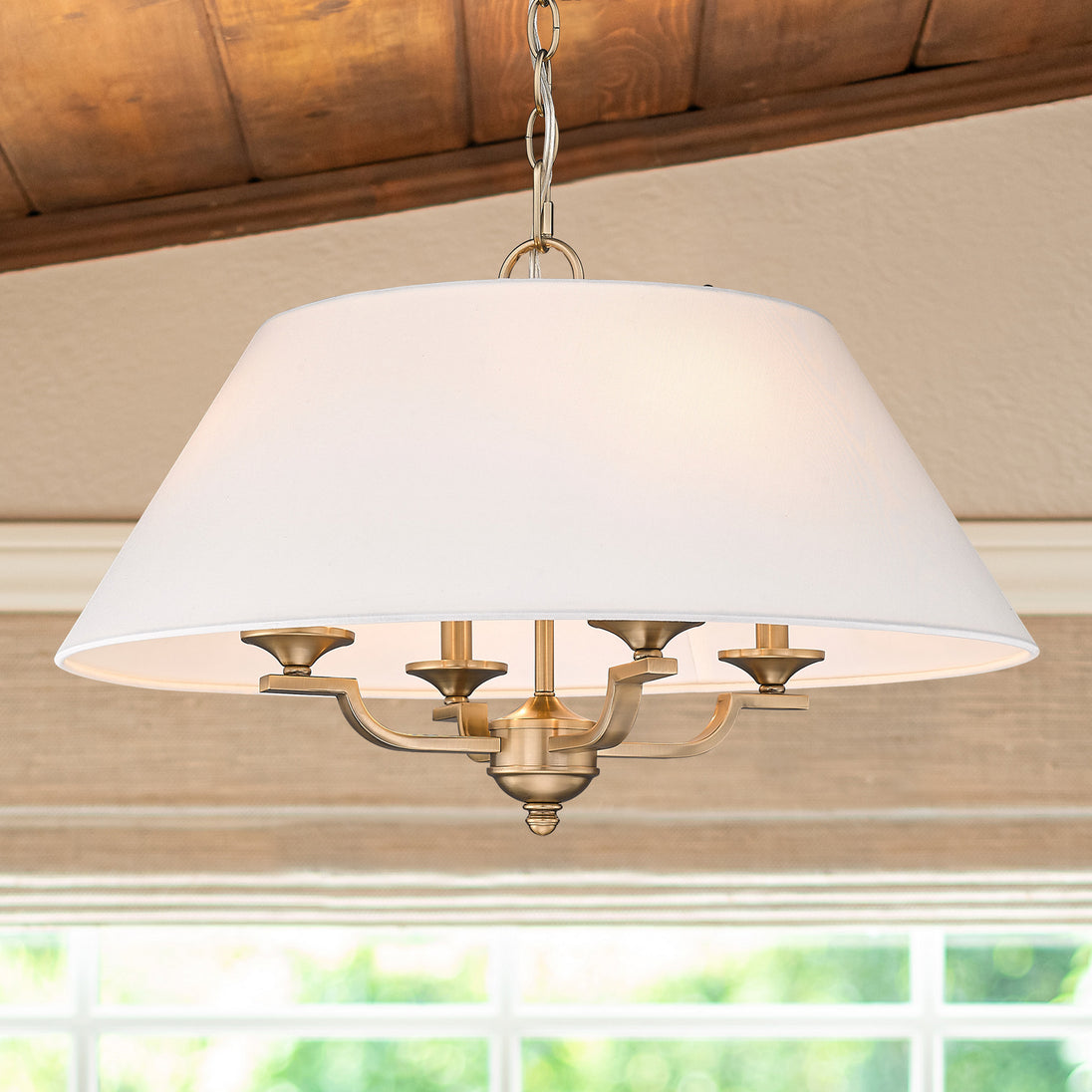 Polished and poised, Coretta shines in traditional and transitional settings. Like an updated classic, the fixture combines vintage and modern elements. The linen material enhances the elegance of the tapered Empire shade. Clean lines and squared metal arms balance the look of the wide shade. When lit, the Ivory Linen shade emits a soft glow. A plated Modern Brass finish complements the ivory shade. Use this damp-rated fixture to dress up any room of your home.