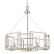 Sleek angles and geometric forms make ultra-modern statements in the Marco collection. The series is offered in multiple finishes that heighten the light airy look of the silhouettes. Clear glass cylinders house stately candelabra bulbs.