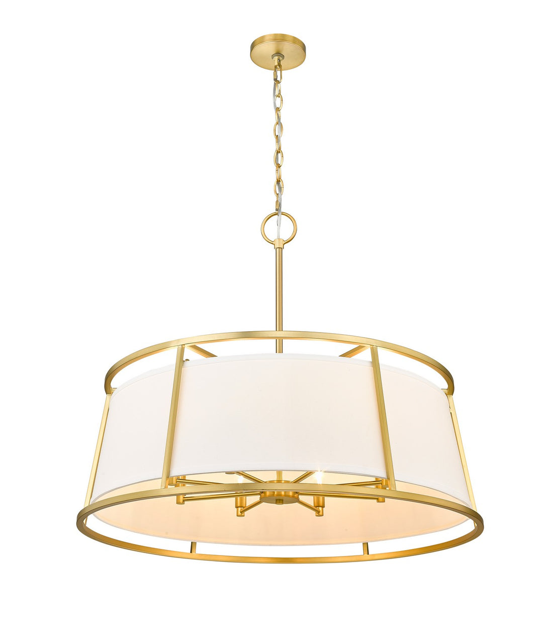 Compelling classic style with impressive ambiance reflects a fixture perfect for a modern living room, dining space, or entryway. The Lenyx eight-light pendant embraces an openwork metal frame offering full view of a classic white linen shade that keeps to a more conventional look with familiarity.