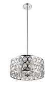 Sleek and streamlined, this hanging ceiling light is dressed up with crystal accents. Clean lines in a bright chrome finish offer instant elevation.