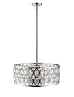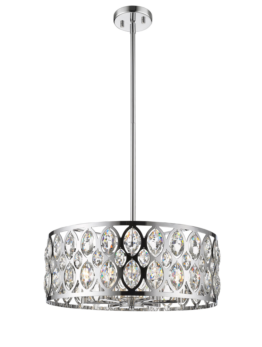 With an open, rounded shade, this hanging ceiling light is full of chic details. Clean chrome streamlines the sleek silhouette while crystal accents elevate with glamour.