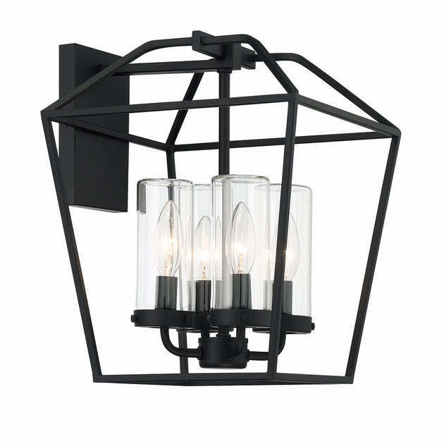 Regular price $418.00The Sawyer features a stylish lantern design in satin black. The candelabra bulbs radiate an ambient glow and add a touch of vintage flair. This outdoor collection offers two variants of wall sconces and a 4-light... -