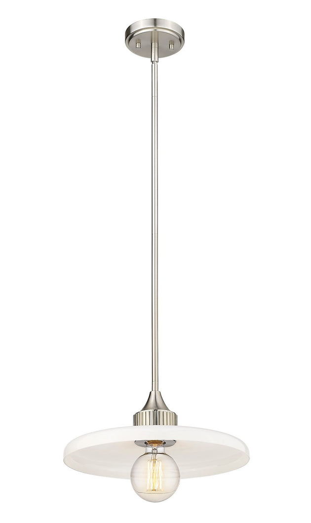 Regular price $244.00Smooth, glossy opal glass creates a wide disc to diffuse the illumination from this modern one-light pendant. Dramatic in any room, the fixture pairs a sleek brushed nickel finish with a simple, clean silhouette that promises... -