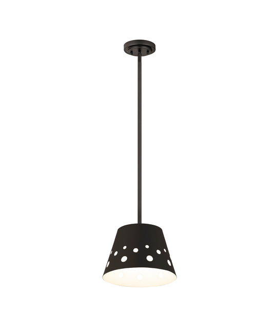 The festive design of the Katie one-light mini-pendant offers inspiring attitude to dress up a casual space. Crafted of matte black finish iron, this delightful fixture features a sleek conical shade with cutout holes that let...Regular price $242.00 -