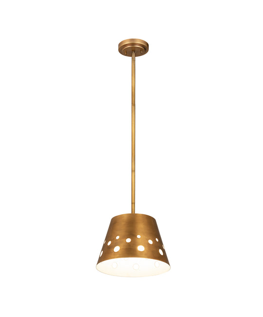 The festive design of the Katie one-light mini-pendant offers inspiring attitude to dress up a casual space. Crafted of warm rubbed brass finish iron, this delightful fixture features a sleek conical shade with cutout holes that...Regular price $242.00 -