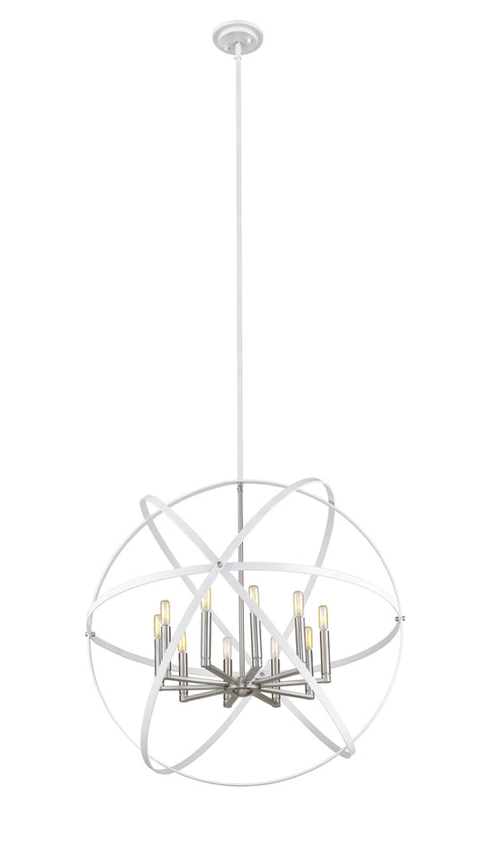 Cavallo Ten Light Chandelier in Hammered White / Brushed Nickel