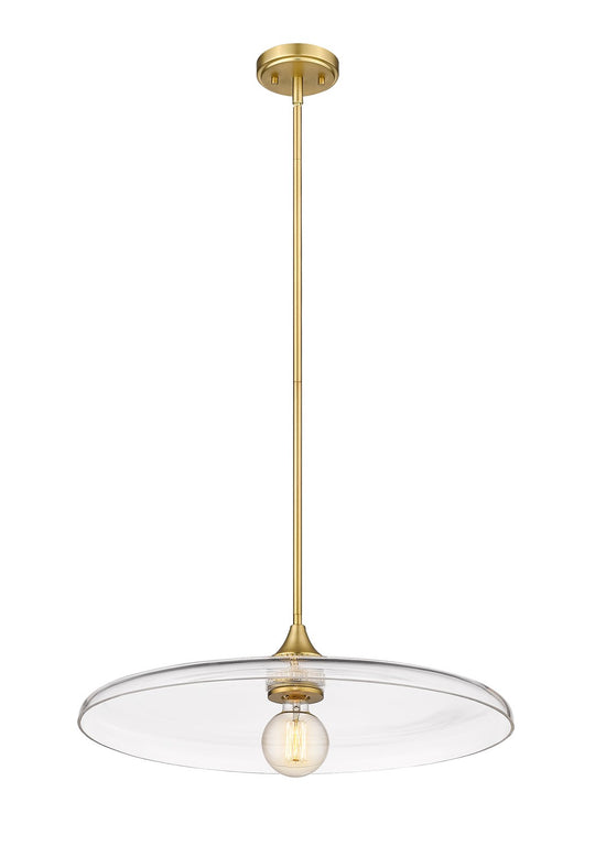 Smooth, clear glass creates a wide disc to deliver the true illumination of this modern one-light pendant. Delivering a compelling mix of whimsy and retro ambiance in any room, the fixture pairs a warm olde brass...Regular price $260.00 -