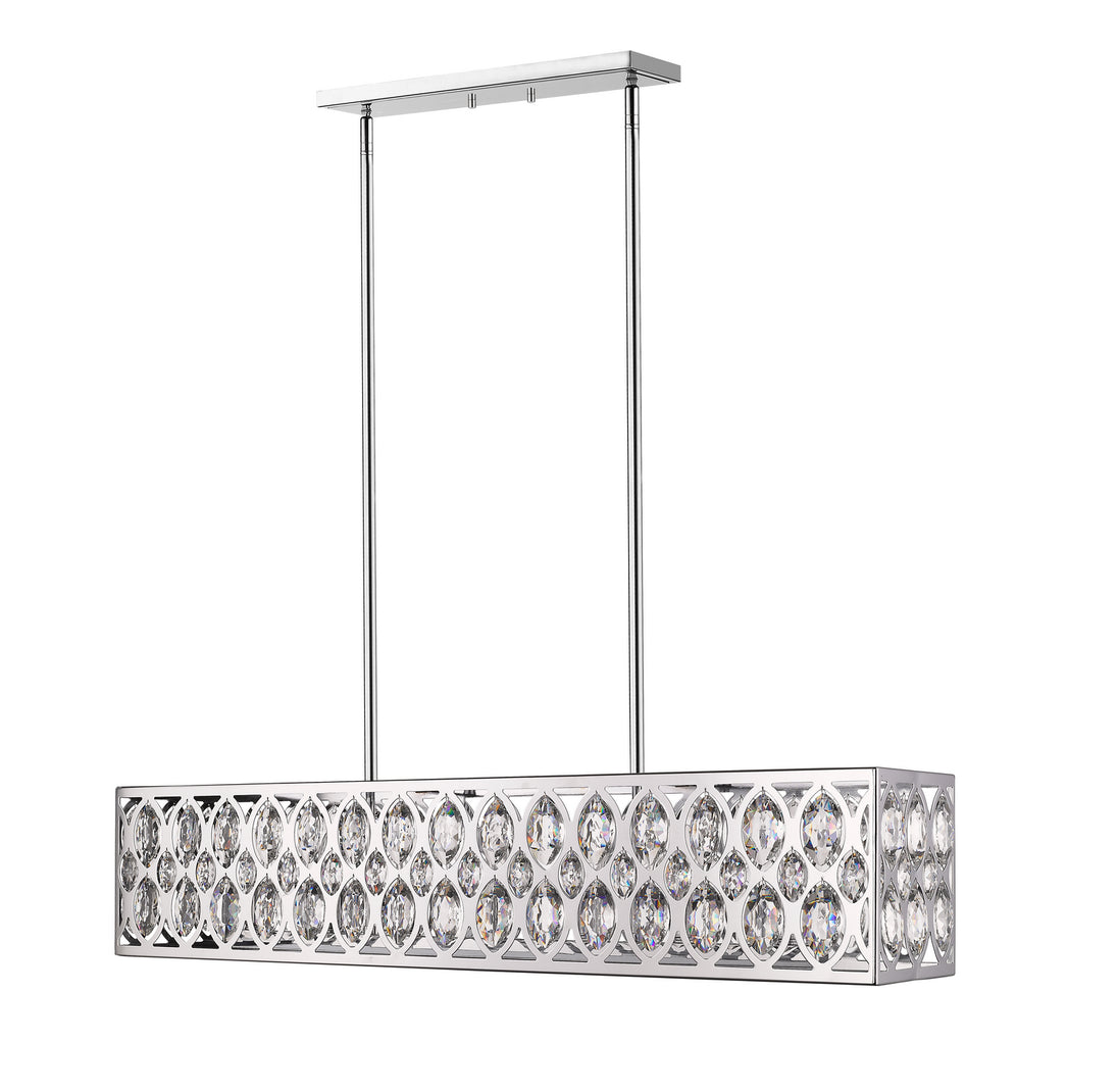 Add style to a modern, chic kitchen or dining room with this crystal hanging ceiling light. The shade features cut out geometric shapes in a bright chrome finish.