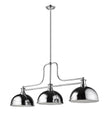 Bright and bold, this three-light ceiling light creates a beautiful focal point. The smoothly rounded shades marry with thin curves in a sleek chrome finish.