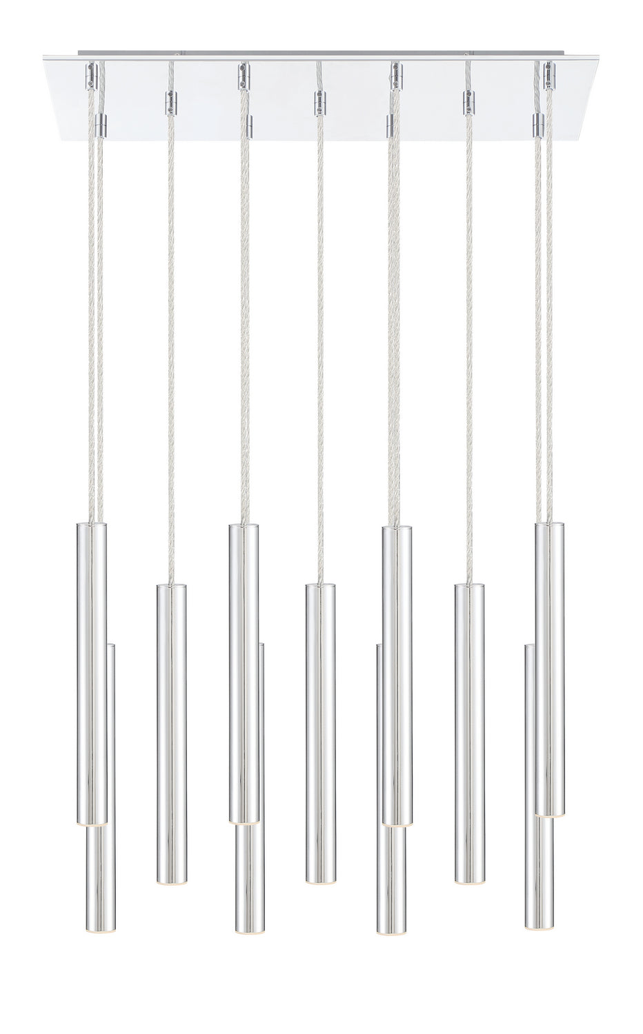 Sophisticated and sleek, this eleven-light pendant light boasts clean lines and style. Dazzle with the radiance of bright chrome, great for casting a rich glow in any modern bathroom or hallway.