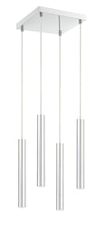 The elongated lines from this four-light pendant light create a radiant focal point. Brilliant and shiny, the chrome finish adds an extra layer of sleekness.