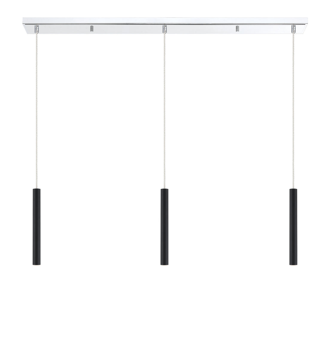 Crisp and clean, this stunning three-light island pendant is full of playful qualities. Elongated lines combine to create a beautiful windchime-inspired silhouette in matte black.