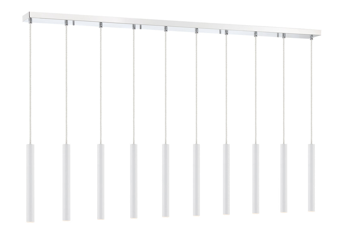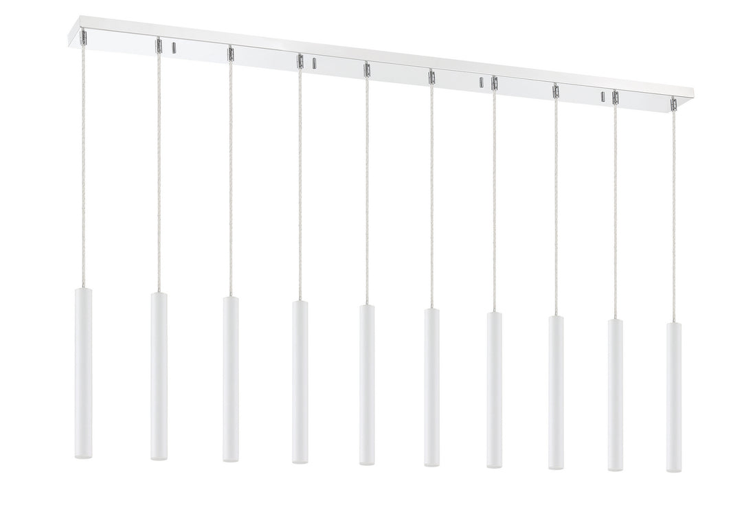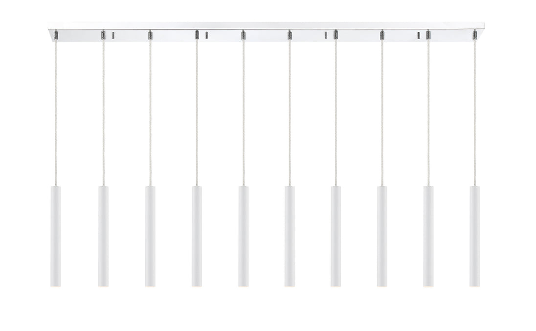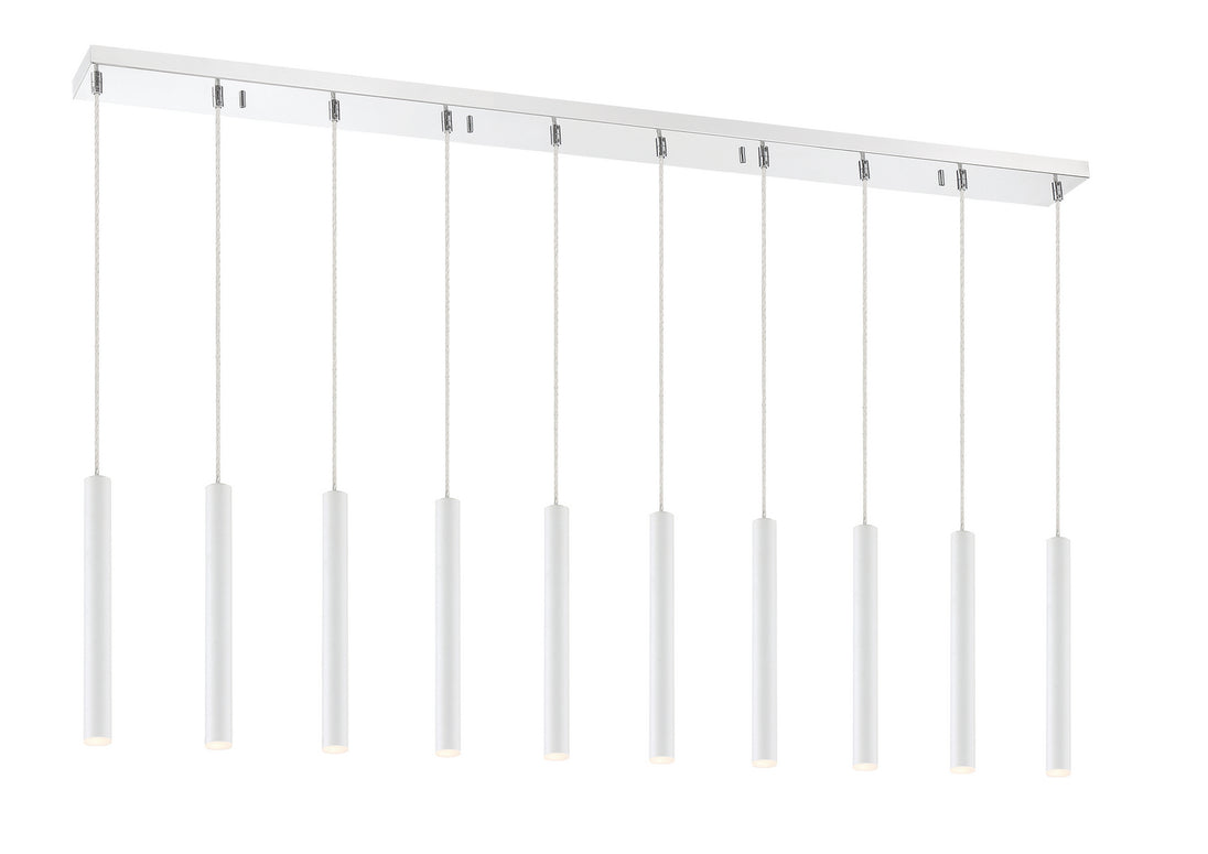 Featuring a row of clean lines, this ten-light island pendant is full of style. Matte white creates a crisp look, elevated by and elongated silhouette.