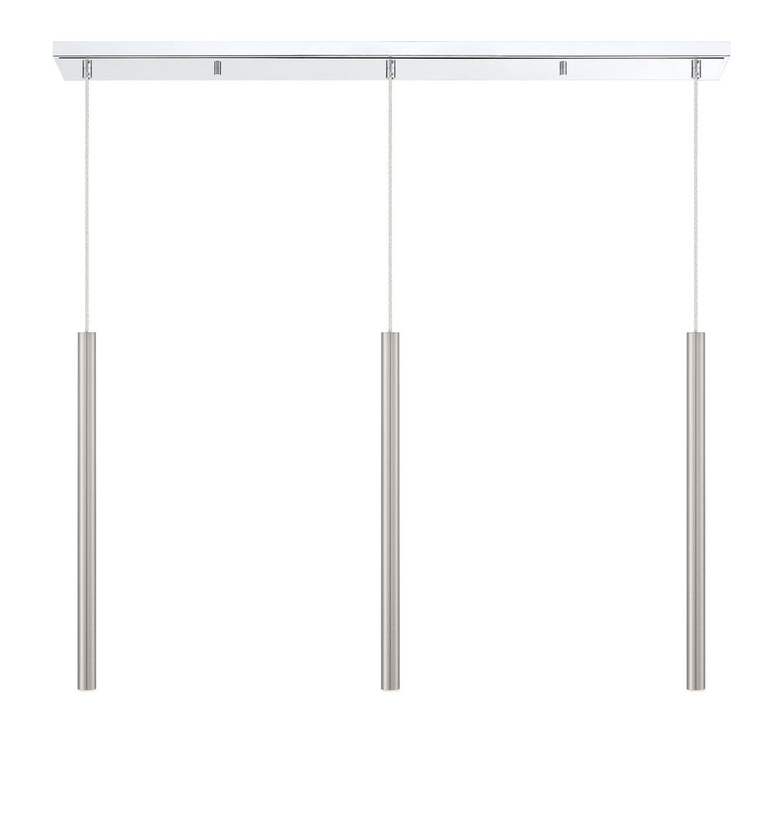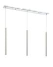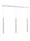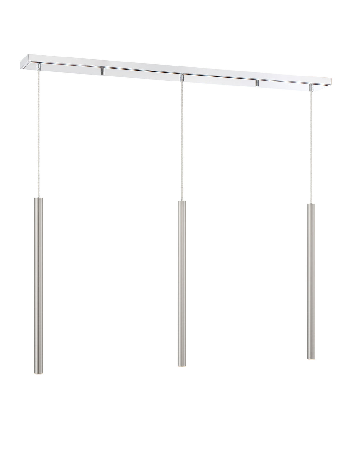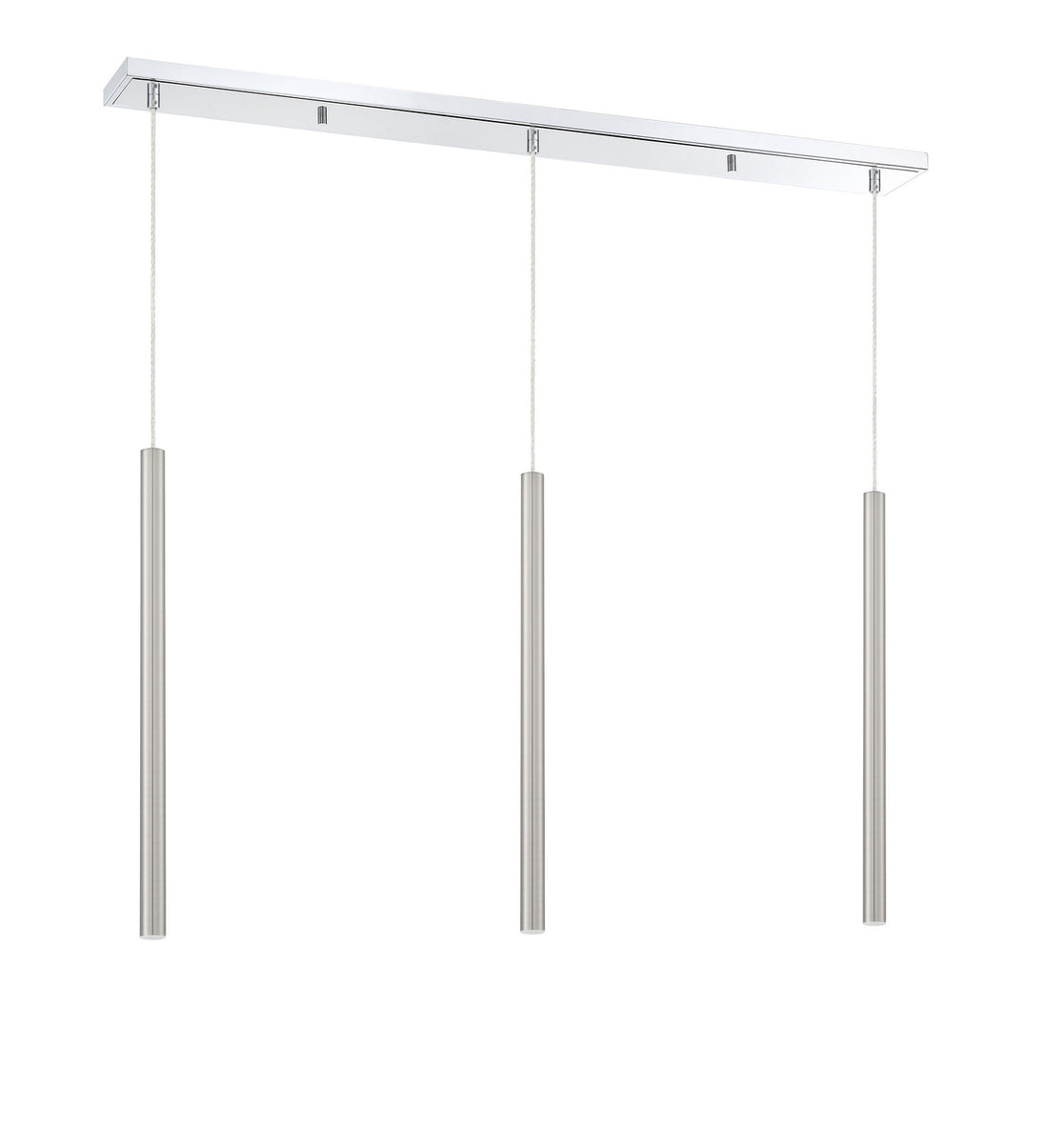 This three-light pendant light looks great in a modern bathroom. The brushed nickel finish streamlines the sleek, windchime-inspired silhouette.
