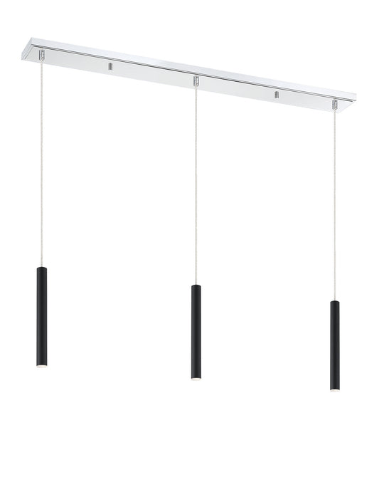 Crisp and clean, this stunning three-light island pendant is full of playful qualities. Elongated lines combine to create a beautiful windchime-inspired silhouette in matte black.Regular price $1,396.00 -