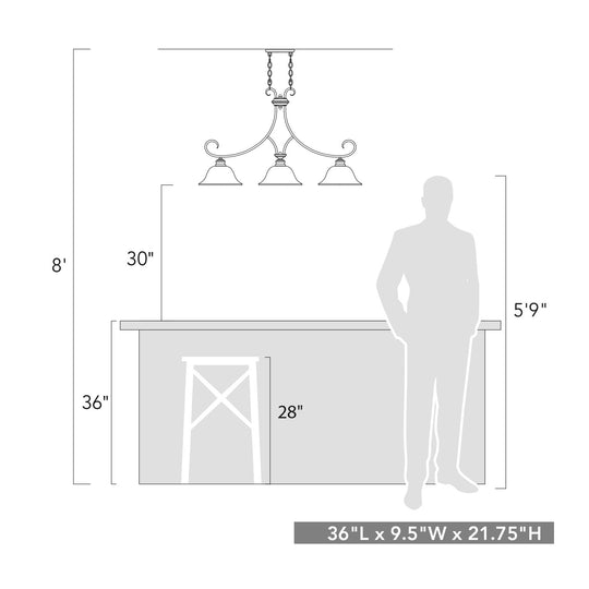 Lancaster RBZ Three Light Linear Pendant in Rubbed Bronze