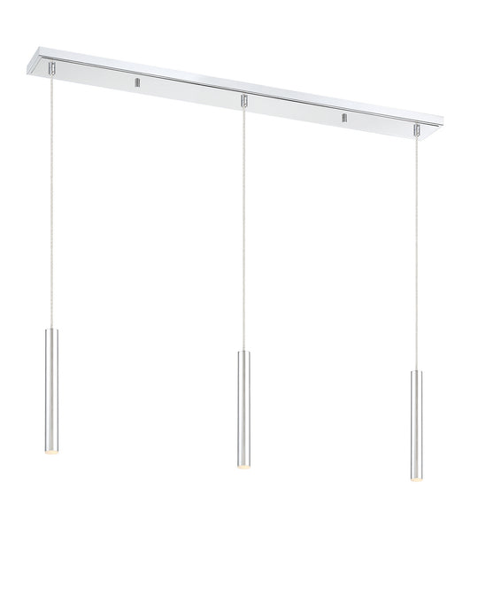 Bright metallic brilliance from this three-light pendant light adds instant elevation. The chrome finish creates a stunning visual, full of soft lighting and elongated lines.Regular price $1,396.00