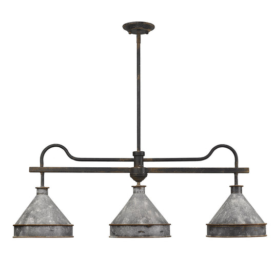Jasper Three Light Linear Pendant in Antique Black Iron