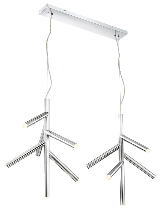 Inspired by modern sculptural design, these two chrome hanging pendants impress with sleek lines. Configured in an interesting pattern, the tubed shapes are complete with dimmable LED lights.Regular price $1,396.00 -