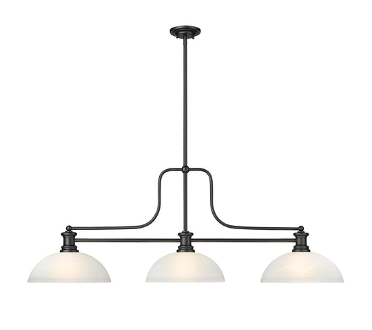 A subtle industrial vibe and matte black and brushed nickel finish pairing flatter this three-light billiards pendant from the Mélange collection by Z-Lite. A simple yet fluid silhouette blends matte black steel and matching dome-shaped steel...Regular price $578.00 -