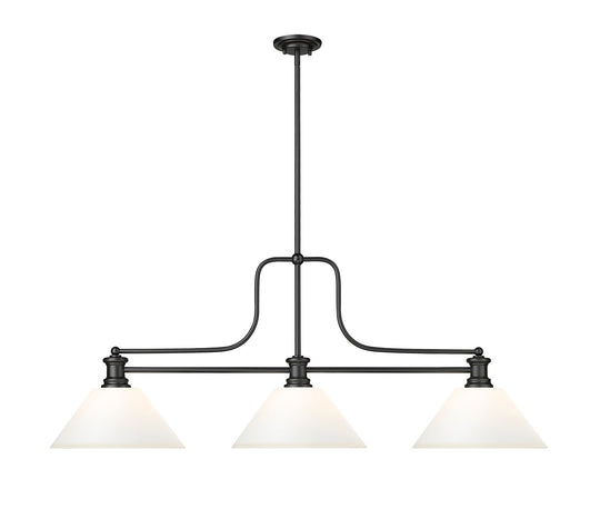 Smooth industrial vibes reflect an easy feel to the design of this stylish three-light billiards light from the Mélange collection by Z-Lite. A simple yet fluid silhouette blends matte black steel and matte opal glass shades...Regular price $578.00 -