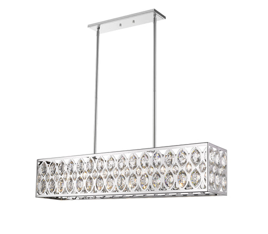Add style to a modern, chic kitchen or dining room with this crystal hanging ceiling light. The shade features cut out geometric shapes in a bright chrome finish.Regular price $990.00 -