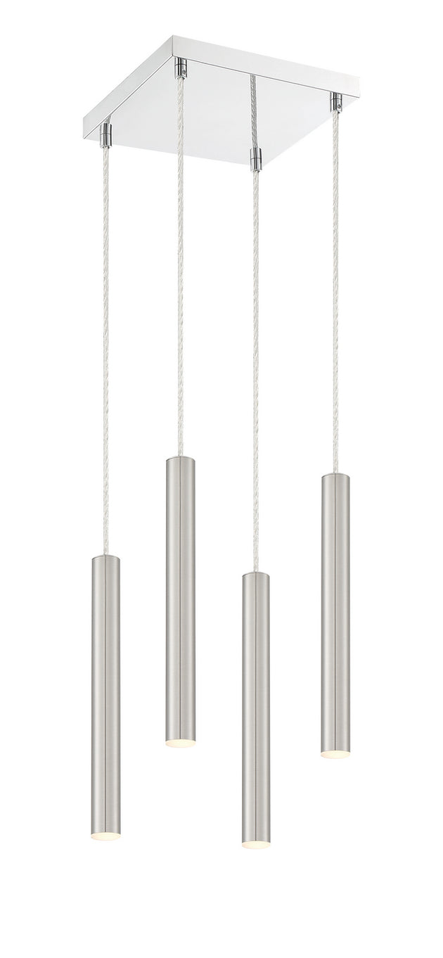 Regular price $1,724.00With a windchime-inspired silhouette, this four-light pendant light is complete with a radiant metallic finish and clean lines. Brushed nickel beams throughout the stylish and elongated shapes. -