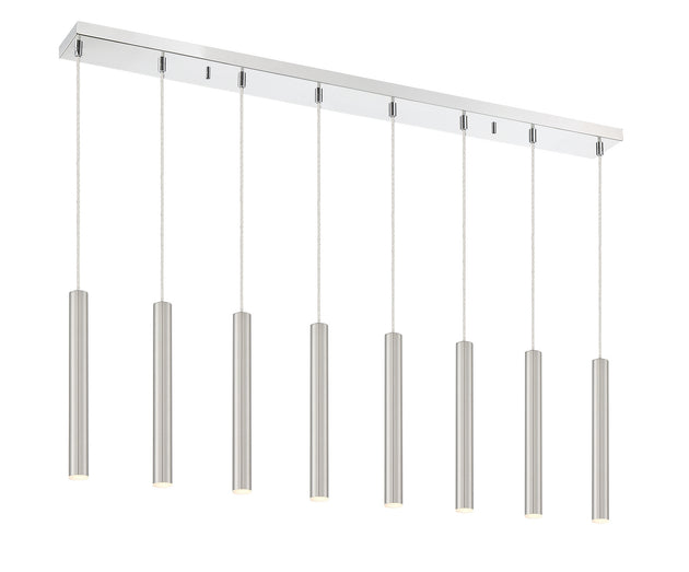 Regular price $1,396.00The stunning silhouette of this windchime-inspired eight-light island pendant offers an instant transformation. The bright brushed nickel finish casts a soft glow through the clean and open design. -