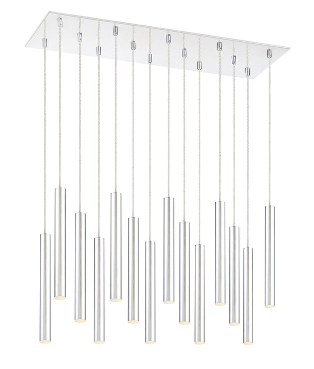Regular price $1,724.00Radiate rich metallic brilliance over a dining room with the quirky details from this fourteen-light pendant light. Craft a charming glow with shiny chrome and elongated shapes. -