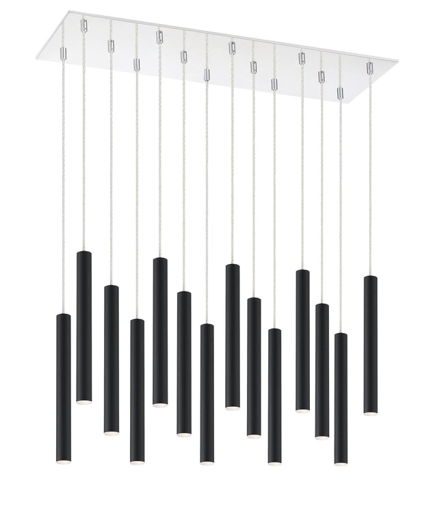 Regular price $1,724.00Celebrate modern sculptural style with the windchime-inspired silhouette of this fourteen-light pendant light. In matte black, the elongated shapes craft a sophisticated visual. -