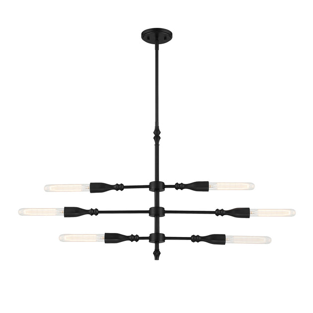 Regular price $0.00Finished in black and paired with old satin brass accents, Ravella combines modern industrial design with a touch of mid-century flair. This hanging chandelier is designed to be the star of your room. It's designed for... -