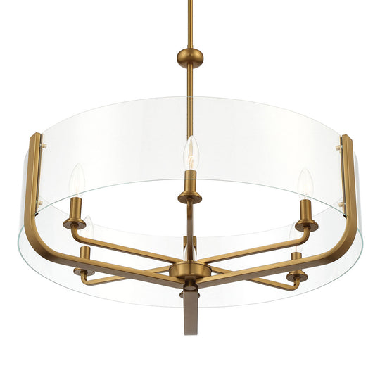 Hand-blown clear glass is seamlessly suspended by a simple frame, highlighting the charm of a candelabra in this transitional piece.Regular price $558.40 -