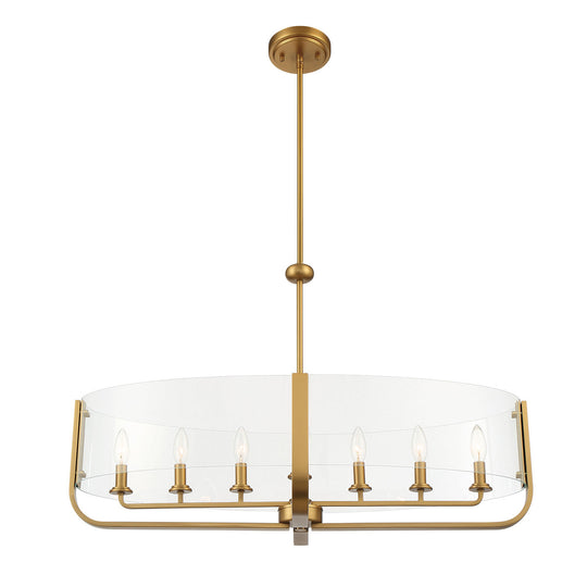 Hand-blown clear glass is seamlessly suspended by a simple frame, highlighting the charm of a candelabra in this transitional piece.Regular price $632.00 -