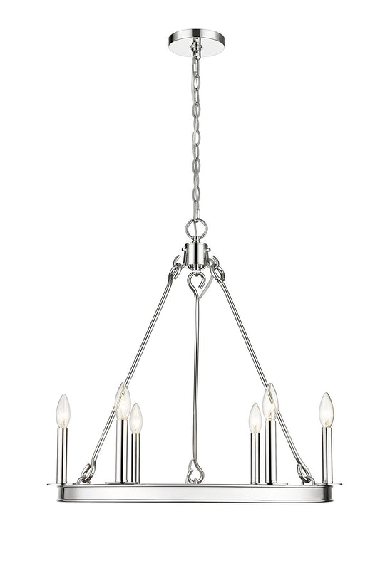 Choose a decadent six-light chandelier from the Barclay collection and add a theatrical motif to a compact dining space or entryway. A classic ring silhouette features construction of polished nickel finish steel, adding versatility to its...Regular price $552.00