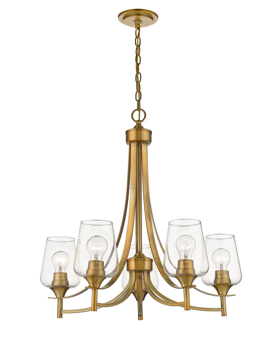 Upscale sophistication with a Mid Century Modern vibe tells the story of this elegant five-light chandelier. A blend of delightful materials offers stunning large glass shades with Olde Brass finish metal arms that are gracefully curved,...Regular price $362.00 -