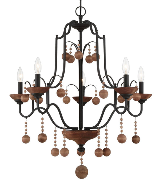 Colonial Charm Five Light Chandelier in Old World Bronze W/Walnut Acce