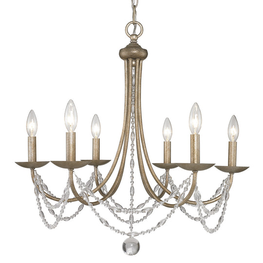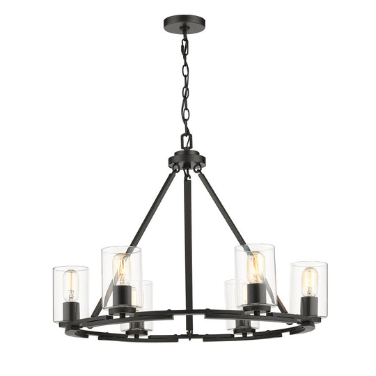 Monroe Six Light Chandelier in Matte Black with Gold Highlights