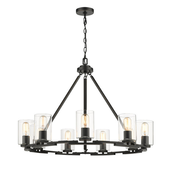 Monroe Nine Light Chandelier in Matte Black with Gold Highlights