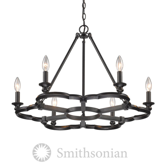 Saxon Six Light Chandelier in Aged Bronze