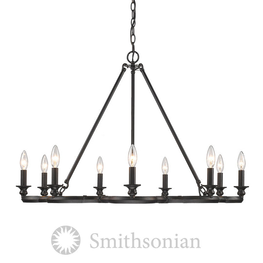 Saxon Nine Light Chandelier in Aged Bronze