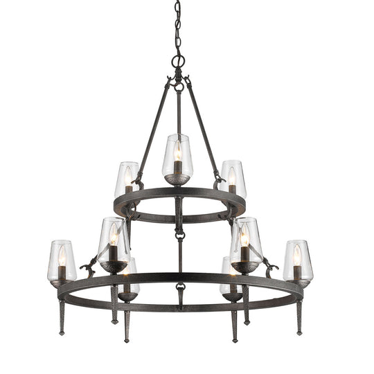Marcellis Nine Light Chandelier in Dark Natural Iron
