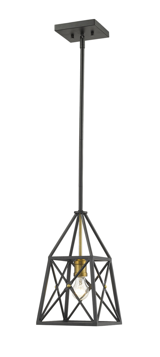 Trestle One Light Pendant in Matte Black / Olde Brass