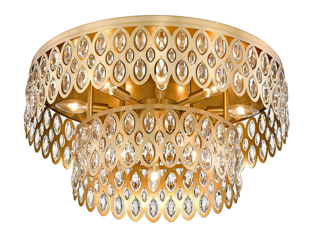 Regular price $1,348.00Wide double tiers showcase the sparkling crystal baubles that define this Dealey collection nine-light flush mount ceiling light. An heirloom brass finish is both warm and welcoming, delivering richness and elegance in a piece that mimics... -