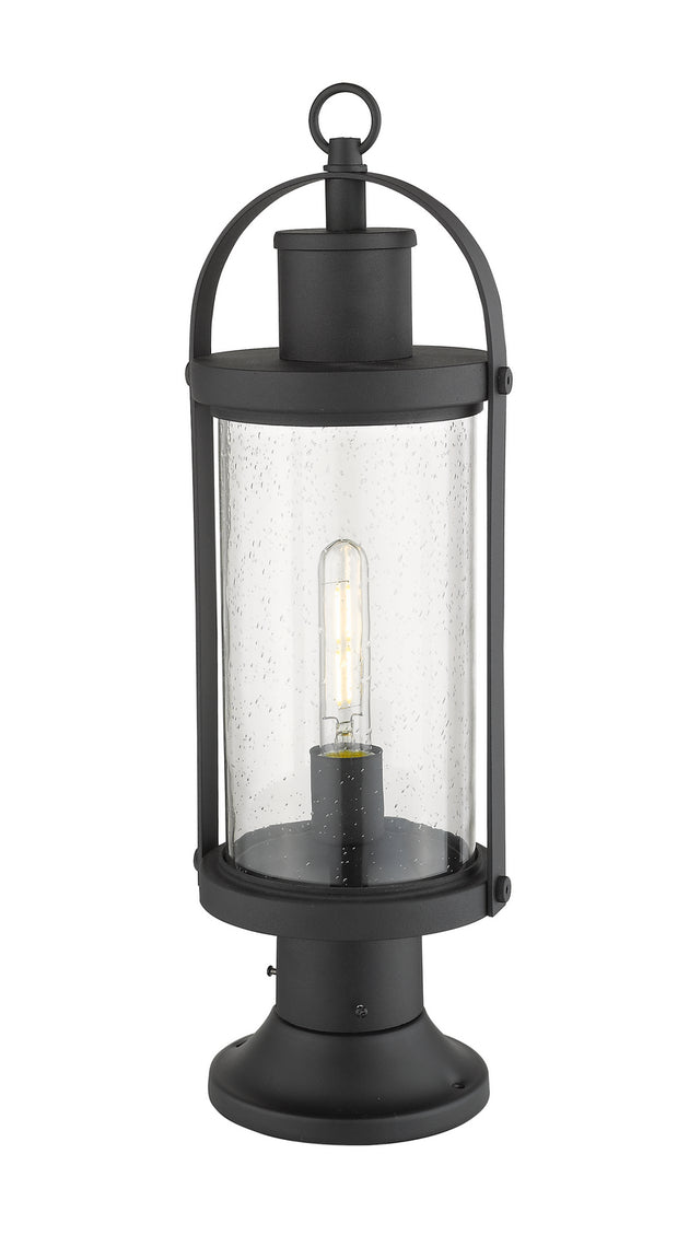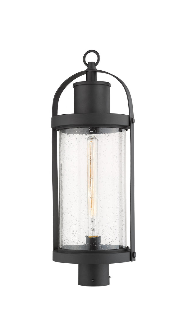 Regular price $744.00Lantern-inspired, this one-light post light transforms any outdoor space with charm. The vintage-like silhouette is complete with a textured shade and sleek black hue. -