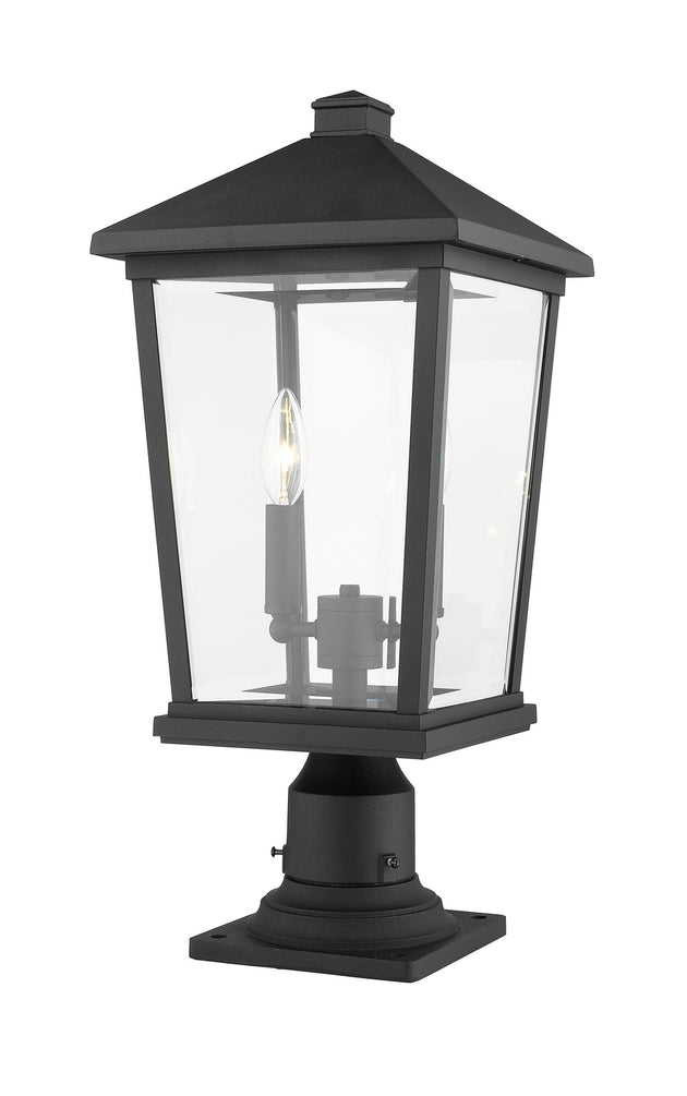 Regular price $710.00This charming outdoor post lantern shows off a custom designed exterior walkway or garden space. Soak up the nostalgic appeal of a village theme with a black finish frame, clear beveled glass panels, and sweet candelabra-style... -