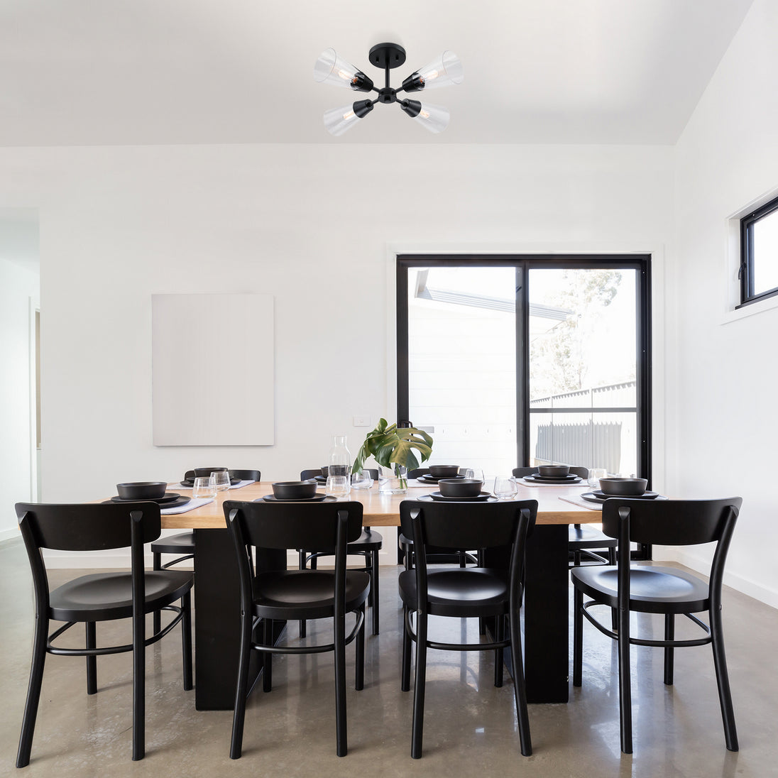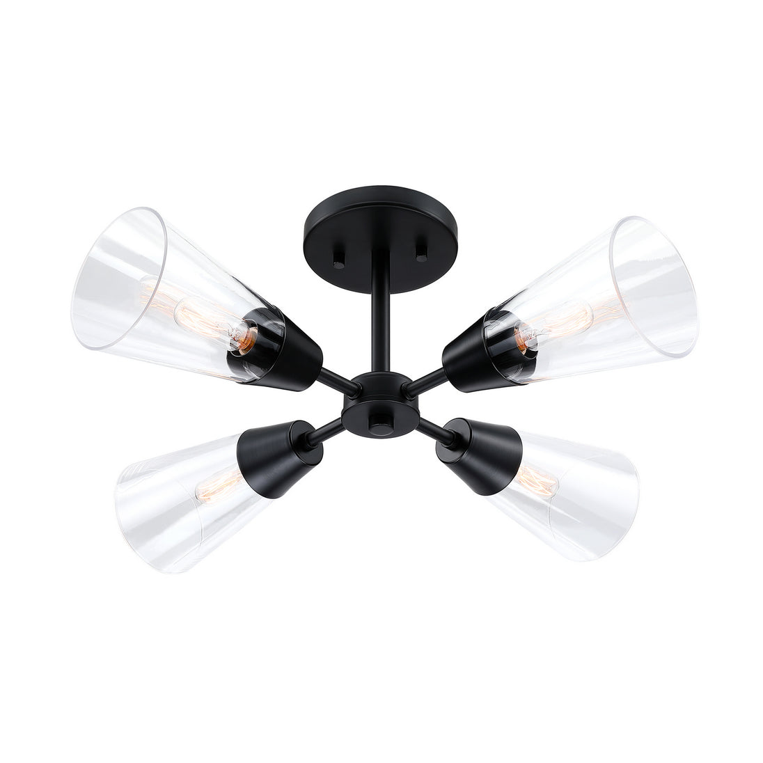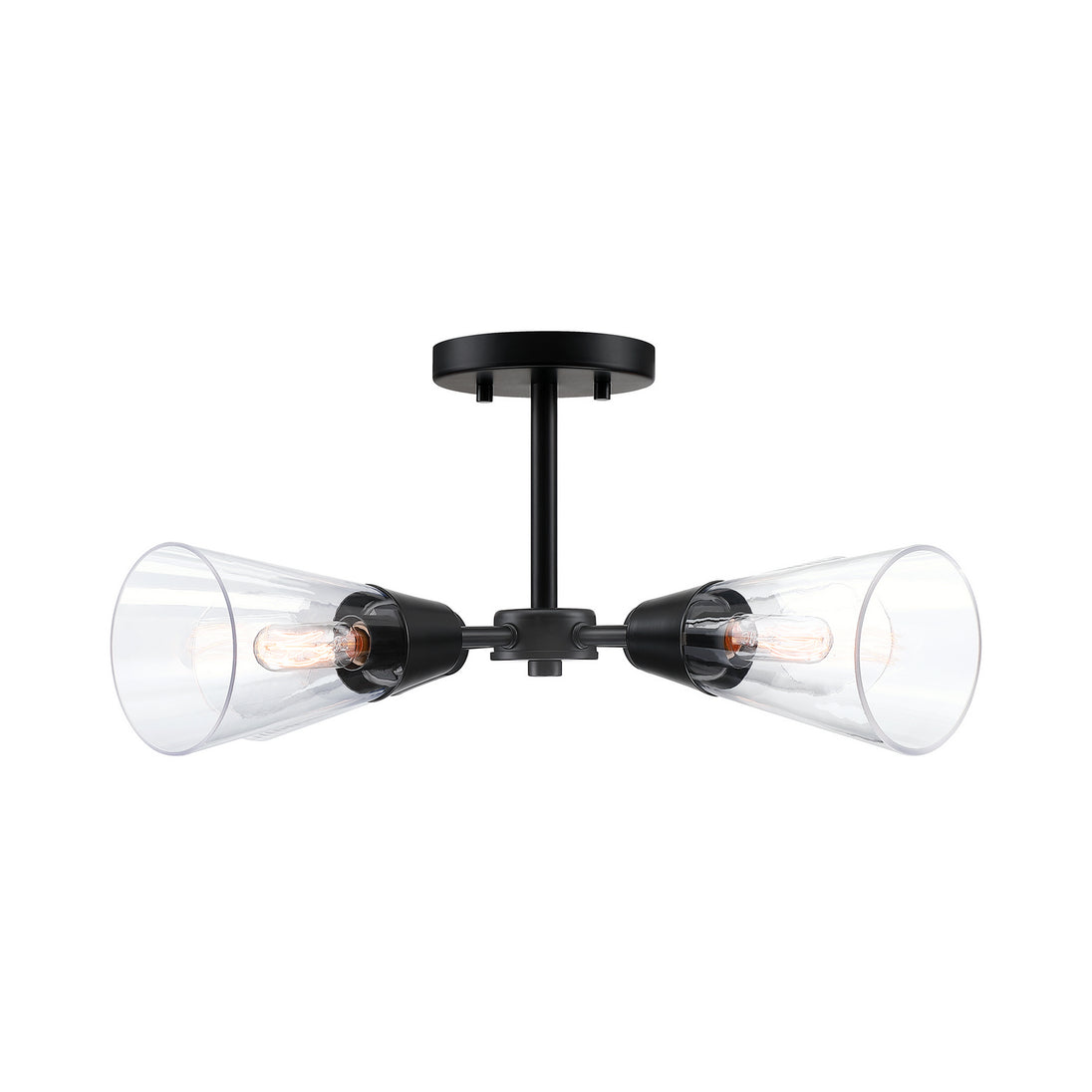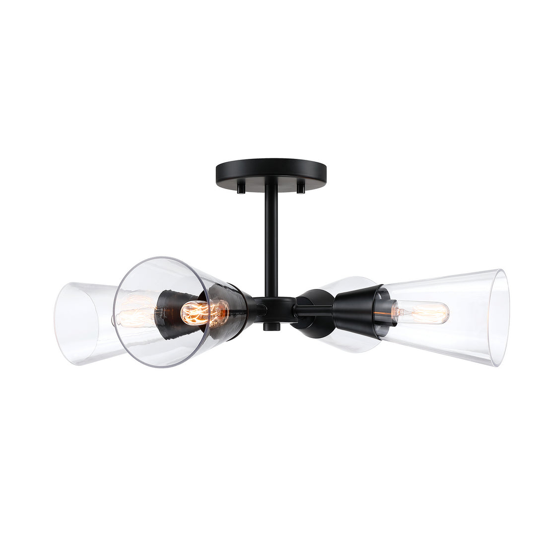 Designers Fountain's Norro family is modern geometric design at it best. Featuring conical clear glass shades and a sleek matte black finish, the minimalist look will be great many d��cors - especially mid-century modern homes or with retro-themed interior design. With a variety of configurations, you're sure to find the perfect piece to start conversations and make your visitors jealous.