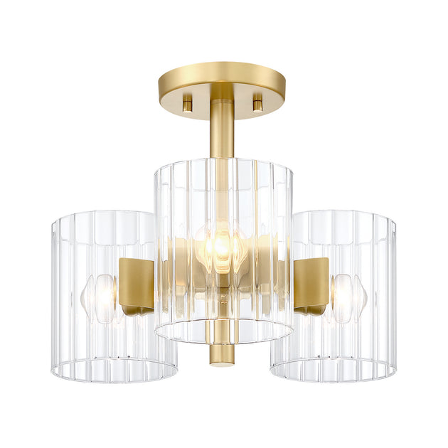 Aries Three Light Semi Flush Mount in Brushed Gold